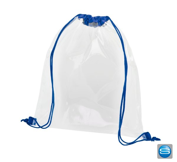 Durchsichtiger Turnbeutel aus klarem PVC mit großer Öffnung oben und 5 verschieden farbigen Zugkordeln. Perfekt für Veranstaltungen wie zum Beispiel Fußballspiele, Konzerte, etc.- die Tasche braucht nicht geöffnet zu werden und man kann die Sicherheitskontrollen schneller passieren. Aber auch einfach als trendiges Werbegeschenk sind die Sportbeutel ein echtes Must Have. Auf Wunsch bedrucken wir den Rucksack individuell 1-farbig im Siebdruck mit Ihrem Logo.
