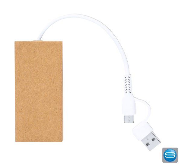 Dieser USB Hub ist aus recyceltem Papier und verfügt über 2 USB und 1 USB-C Anschluss. Der Hub kommt mit einem Kabel mit einem USB und einem USB-C Anschluss. Mit Ihrem Logo, ist das das perfekte Werbemittel für Sie.