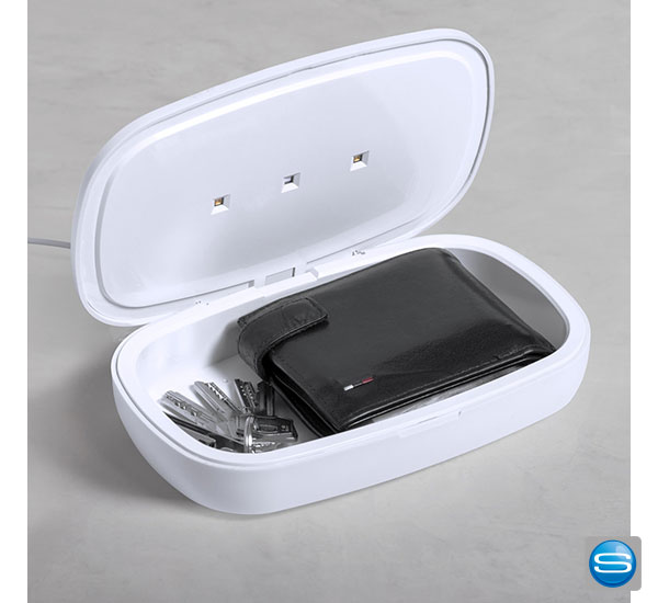 Diese Sterilisationsbox mit UV Licht (Typ C) besteht aus widerstandsfähigem ABS und wurde entwickelt für die Vernichtung von Mikroorganismen/Bakterien auf Oberflächen des täglichen Gebrauchs (z.B. Smartphone, Schlüssel, Uhr, Brille, Geldbörse usw.). Die Anwendung des Give Aways ist kinderleicht, einfach den gewünschten Gegenstand für einige Minuten in die Box zur Sterilisation legen. Die Zeiteinstellung wird mit einer Auto-Off-Funktion eingestellt und beträgt 5 und 10 Minuten. Die Leistung der Lampe beträgt 1W; Wellenlänge 270-280 nm und Spannung 5V, mit Stromversorgung über 1 m langes USB-Kabel. Das Benutzerhandbuch ist sodann entweder auf Spanisch oder Englisch erhältlich. Vermeiden Sie Haut- bzw. Augenkontakt! Ihr Firmenlogo wird oben auf die Box aufgedruckt werden, sodass Ihr Unternehmen immer im Gedächtnis Ihrer Kunden bleibt.