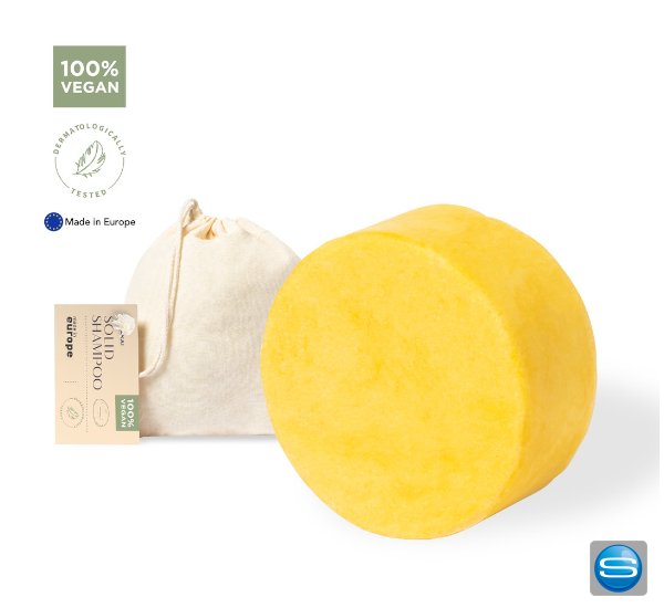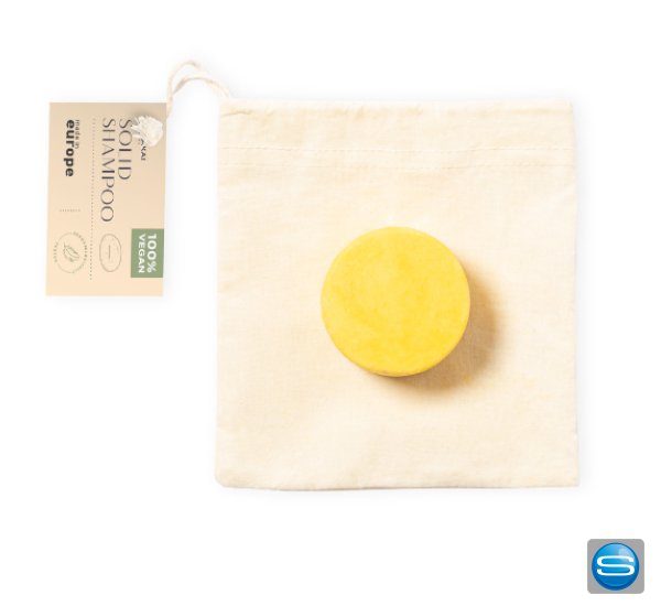 Veganes festes Shampoo in bedruckbarem Baumwollbeutel als nachhaltiges Give Away