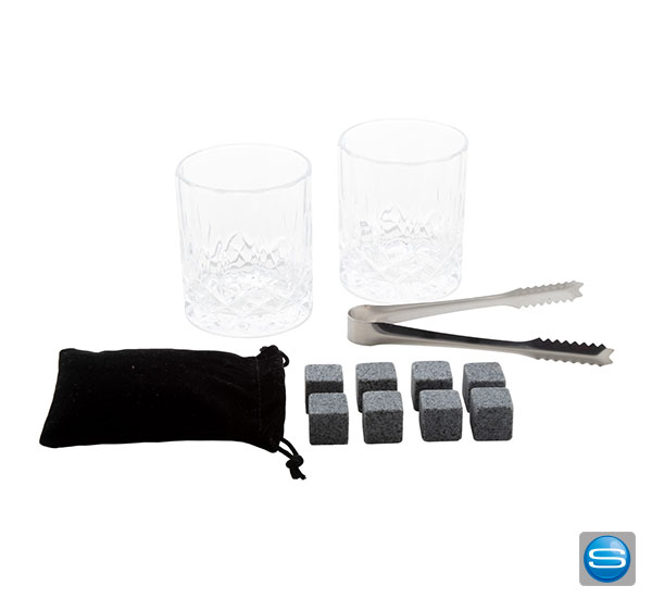 Das luxuriöse Whisky-Set wird in einer Bambus-Geschenkschachtel geliefert. Beinhaltet zwei Whiskygläser (250 ml), 8 wiederverwendbare Stein-Eiswürfel mit Aufbewahrungsetui und Zange aus Edelstahl. Ihr Firmenzeichen wird mittels Keramikdruck auf dem Glas angebracht, oder mittels Tampondruck auf dem Deckel der Schachtel.