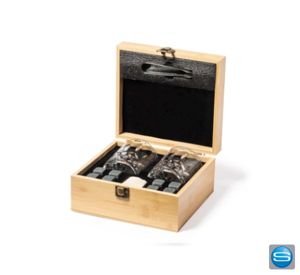 Whisky Set im eleganten Bambus Etui als Werbegeschenk