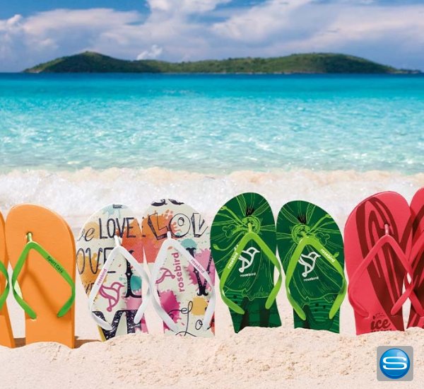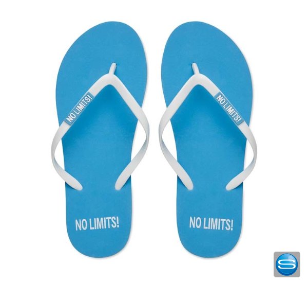 Zehensandalen als Werbegeschenk Sohle und Riemchen sind in den Farben Ihrer Wahl erhältlich – wahlweise aus der Standardfarbpalette oder individuell nach Pantone, ohne Aufpreis. Ihr Logo kann auf die Sohle und das Riemchen gedruckt werden. Für besondere Akzente stehen zwei Veredelungsoptionen zur Verfügung: Eine ca. 2 mm tiefe Prägung auf der Laufsohle erlaubt feinere Details. Alternativ sorgt eine ca. 5 mm tiefe Stanzung für einen sichtbaren Logoabdruck im Sand. (Bitte beachten: Bei dieser Technik kann eine Designanpassung erforderlich sein.)Spezifikationen der Strandschuhe